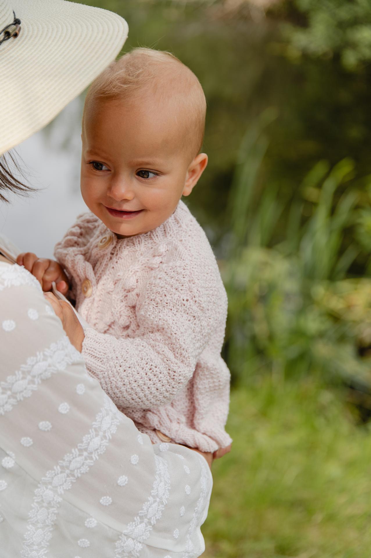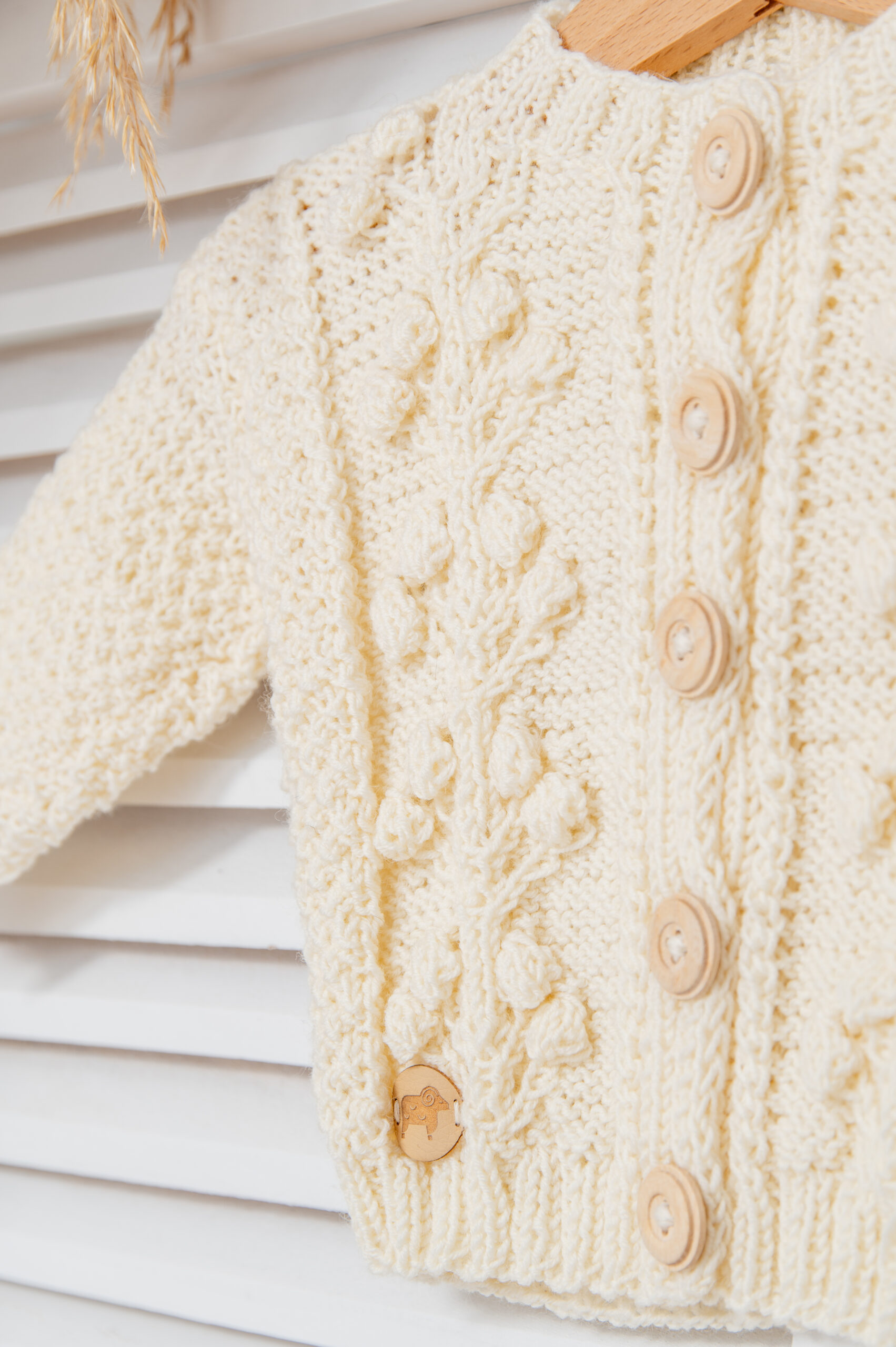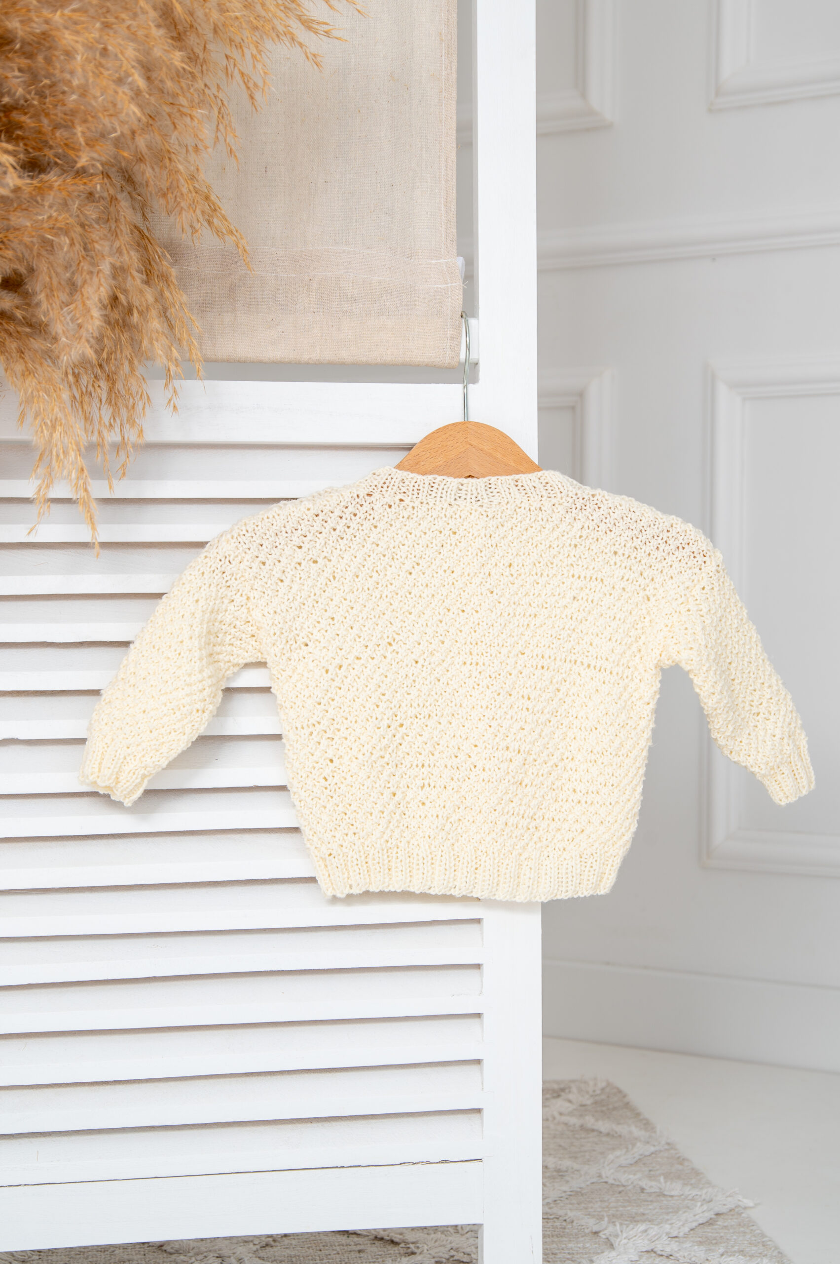 Uroczy sweterek z przepiękną, roślinną aplikacją na przodzie, podkreśli urodę Twojego dziecka. Dostępny w pastelowych kolorach, wykonany ręcznie w 100% z wełny merino jest lekki i delikatny zarówno dla ciała jak i dla oka. Hypoalergiczny i niegryzący, zapinany na drewniane guziczki.