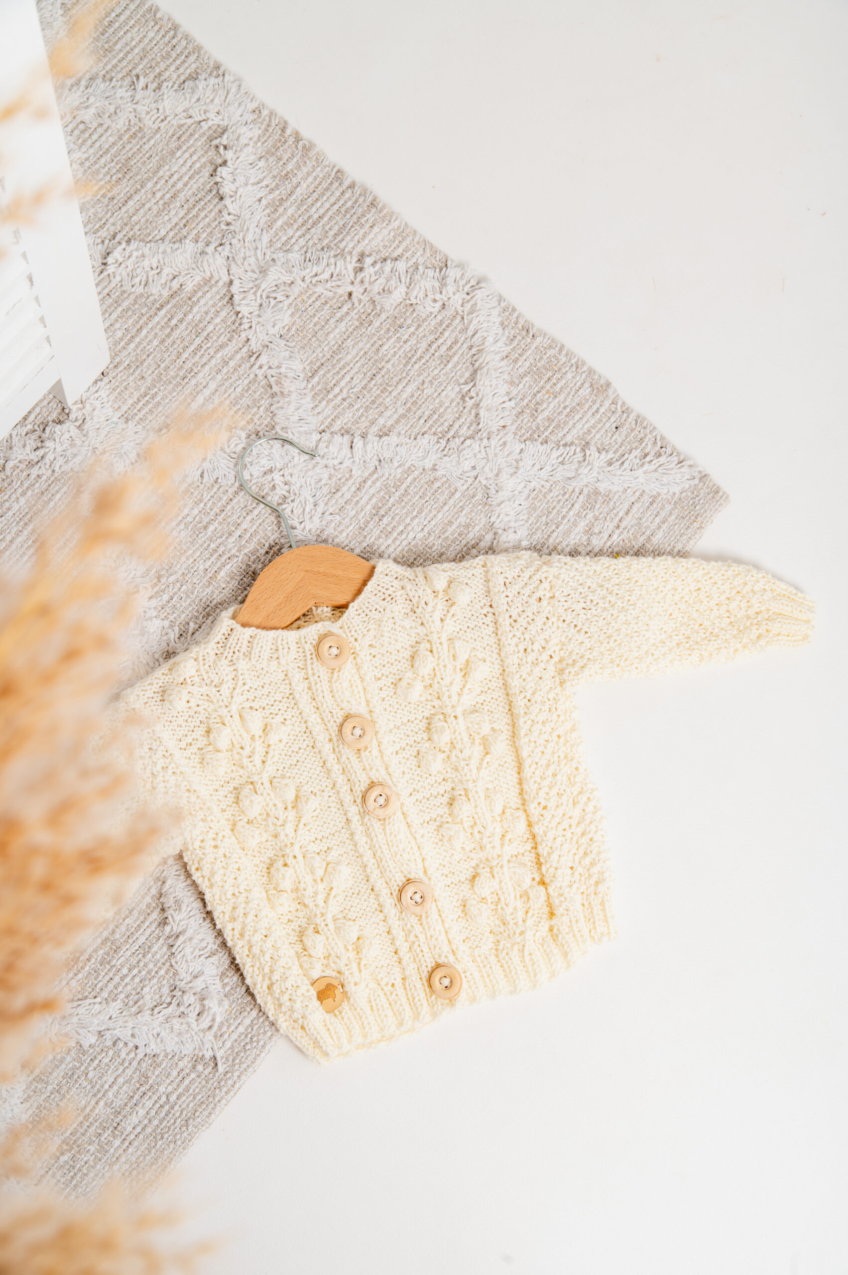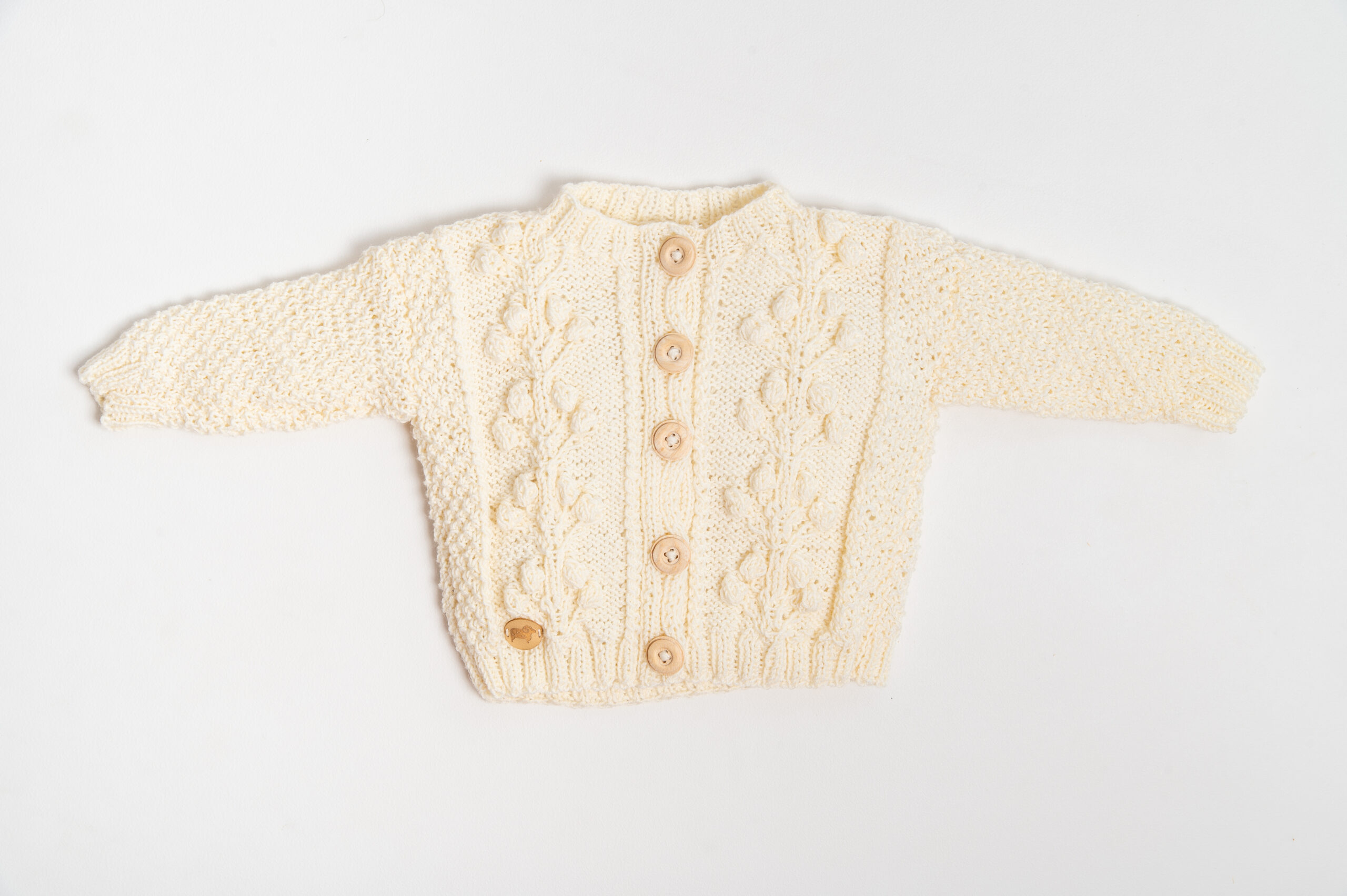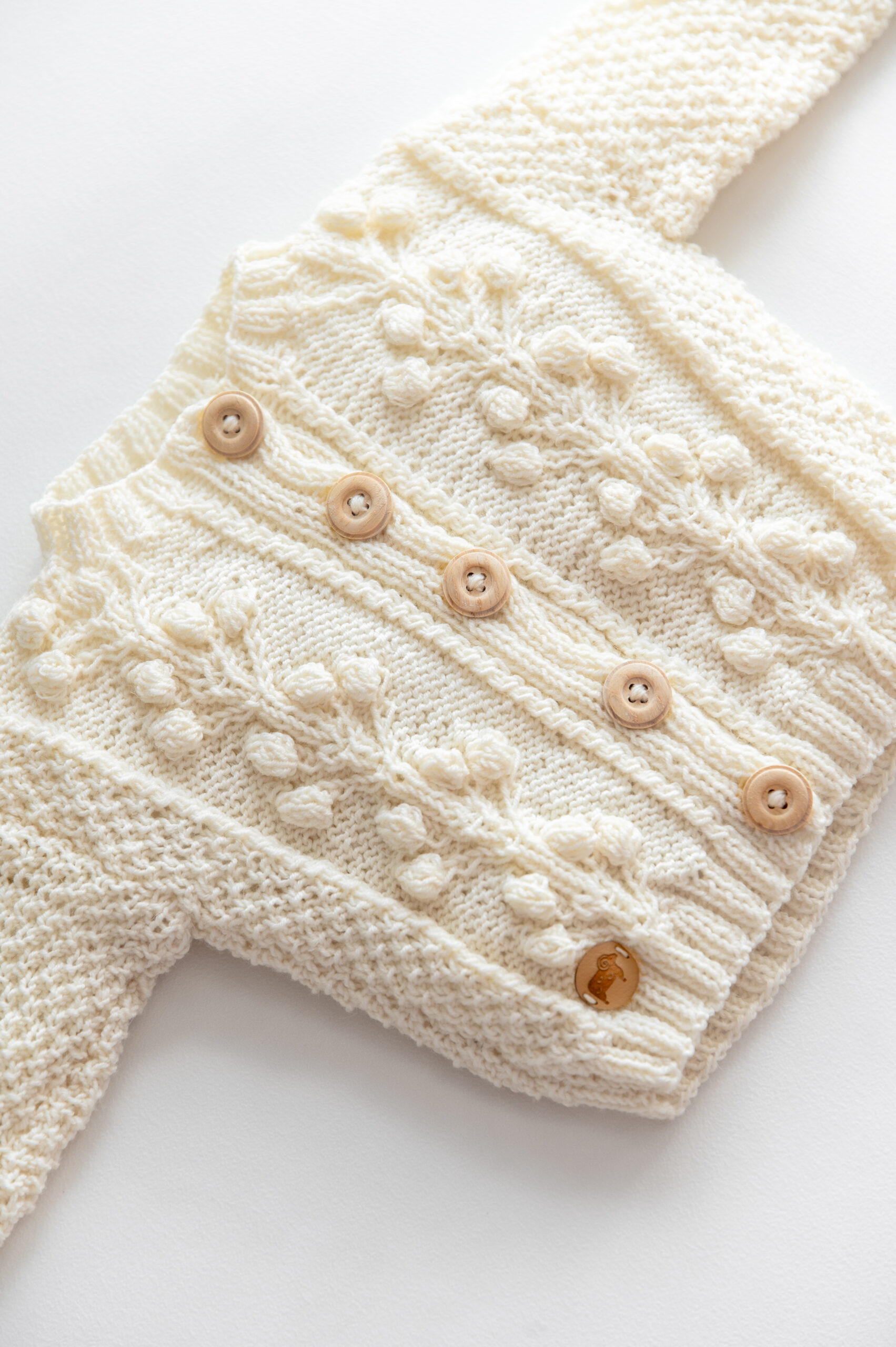 Uroczy sweterek z przepiękną, roślinną aplikacją na przodzie, podkreśli urodę Twojego dziecka. Dostępny w pastelowych kolorach, wykonany ręcznie w 100% z wełny merino jest lekki i delikatny zarówno dla ciała jak i dla oka. Hypoalergiczny i niegryzący, zapinany na drewniane guziczki.